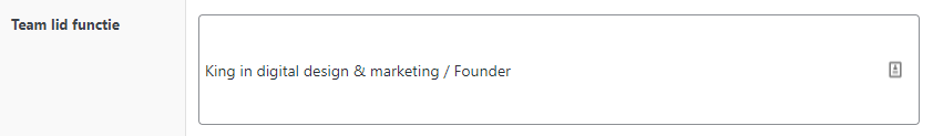 Een URL veld spreekt uiteraard voor zich, hiermee kun je een URL ingeven. Je herkent dit veld aan het wereldbol symbool vooraan het veld.