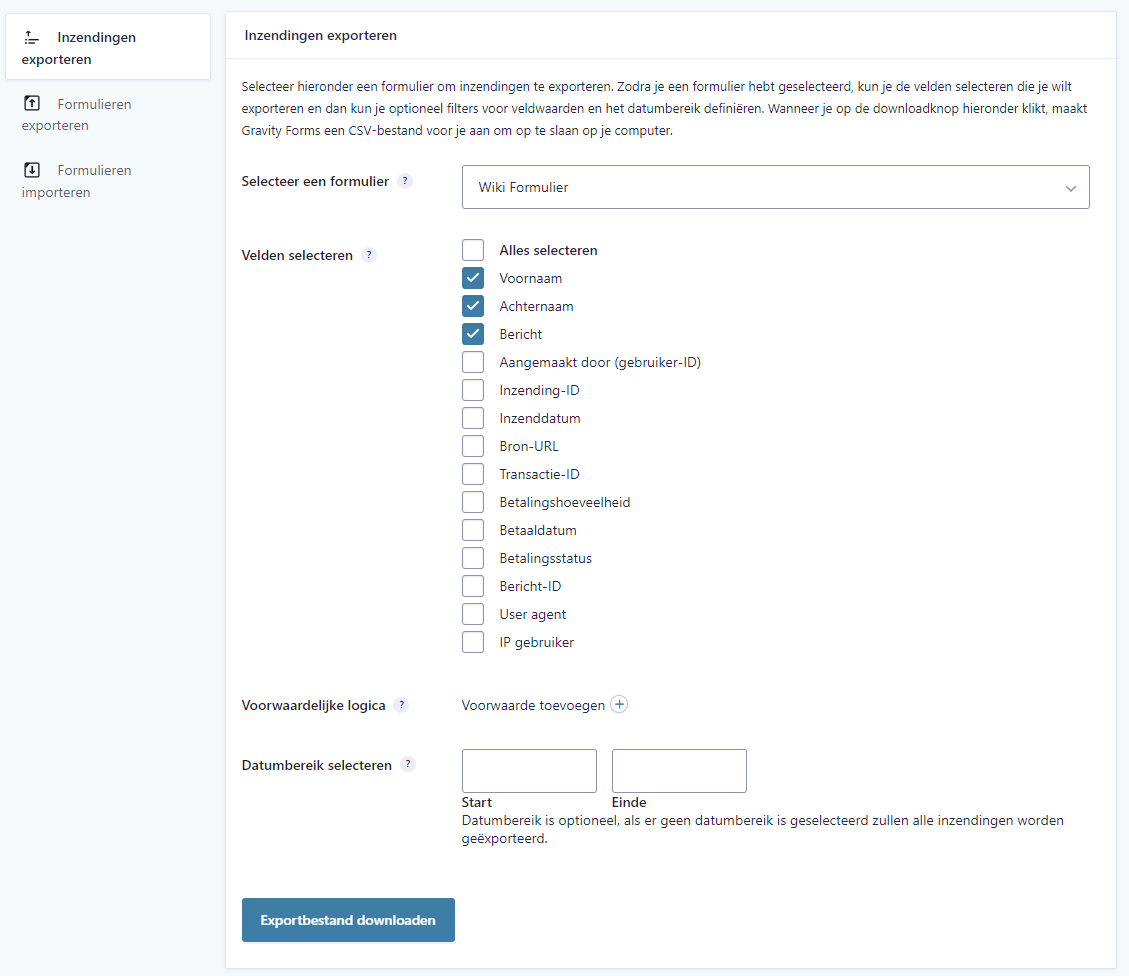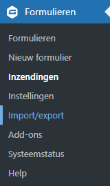 Kies voor Inzendingen Exporteren en selecteer het formulier welke je wilt exporteren.